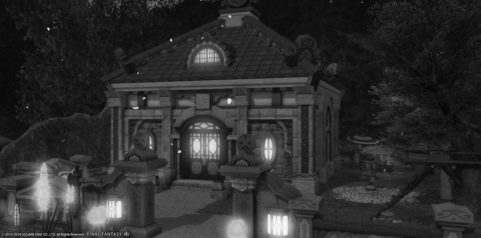Located deep in the heart of The Lavender Bed's abandoned mining operations, this Gridanian-Hingan “inn” can either be a guiding light, or a gruesome front, for many a wayward soul. The nostalgic, warm lobby of the inn serves as a trap to lure weary adventurers into a state of comfort, with the lingering scent of unfinished laced tea ultimately being the only memento left in their wake.For those feeling the pain of loss or overwhelming guilt, some might actively choose to seek salvation in the presence of Lady Cynthia. They eventually formed a sisterhood to assist her in the depths below, partaking in a series of blood rituals, adventurer abductions, and grisly experiments, all in an effort to resurrect their loved ones - no matter the cost nor consequences to Gridania and its people.
